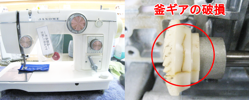 釜ギアの破損が原因なので、オーバーホール・部品交換で修理させていただきました。
