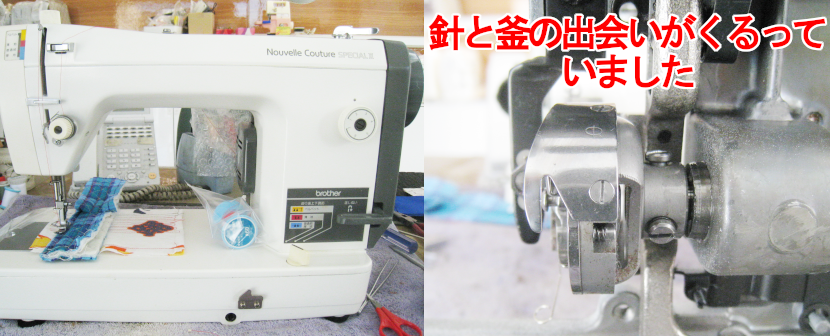 針と釜の出会いがくるっていたことが原因なので、オーバーホール・各部調整でスムーズに縫えるように修理させていただきました。