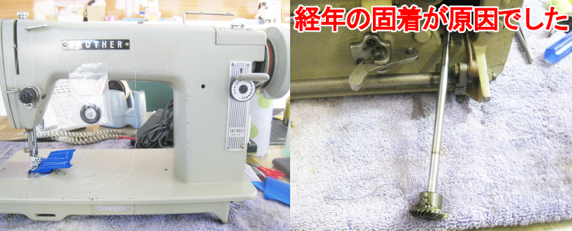 経年の固着が原因なので、オーバーホール・各部調整でスムーズに縫えるように修理させていただきました。