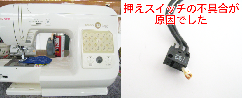 押えスイッチの不具合が原因なので、部分的分解・部品交換で修理させていただきました。