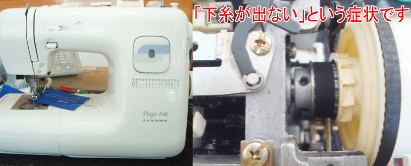 東京都足立区からご来店されたお客様の電子ミシンで「下糸が出ない」という症状です。