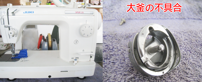 大釜の不具合が原因なので、オーバーホール・部品交換でスムーズに縫えるように修理させていただきました。