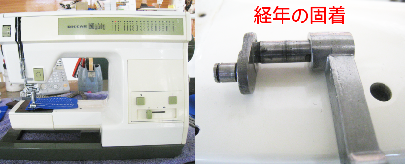 経年の固着が原因なので、オーバーホール・内外部クリーンアップでスムーズに縫えるように修理させていただきました。