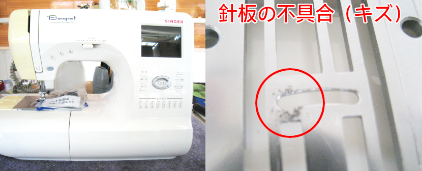 針板の不具合(キズ)が原因なので、オーバーホール・部品交換でスムーズに縫えるように修理させていただきました。