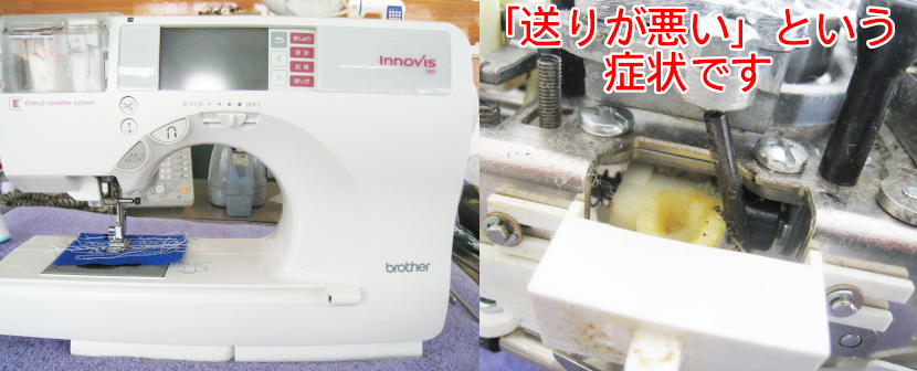 埼玉県上尾市からご来店されたお客様のコンピュータミシンで「送りが悪い」という症状です。