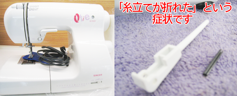 ミシンの宅配修理で集荷させていただいたお客様のコンパクトミシンで「糸立てが折れた」という症状です。