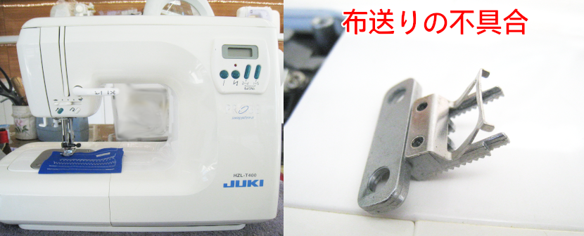 布送りの不具合が原因なので、オーバーホール・部品交換でスムーズに縫えるように修理させていただきました。