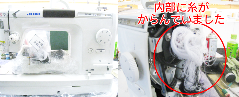 埼玉県さいたま市浦和区からご来店されたお客様の職業用ミシンで「下糸が巻けない」という症状です。