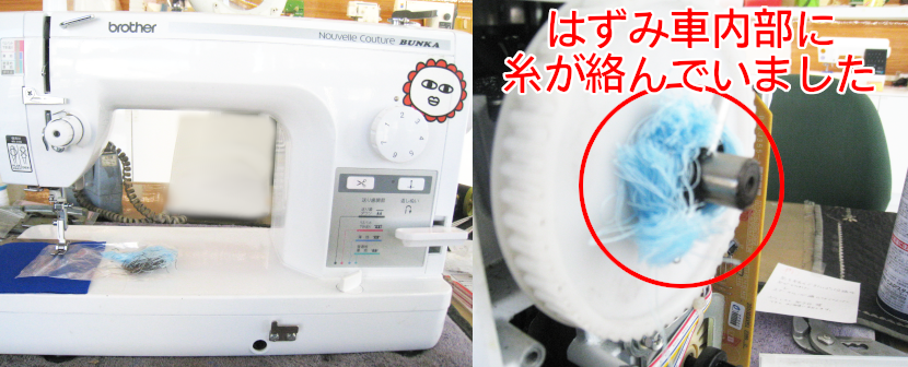 糸が絡んでいたこと及びオイル・メンテナンス不足が原因なので、オーバーホール・クリーンアップで修理させていただきました。