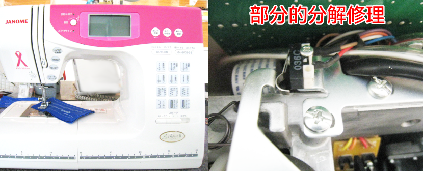下糸巻きの不具合が原因なので、部分的分解・調整でスムーズに縫えるように修理させていただきました。