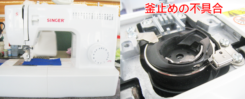 釜止めの不具合が原因なので、部分的分解・調整でスムーズに縫えるように修理させていただきました。