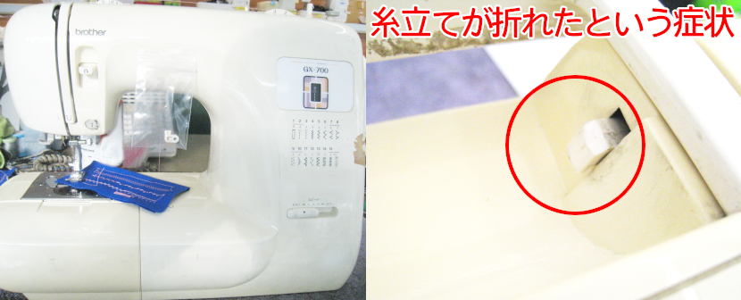 埼玉県朝霞市からご来店されたお客様の電子ミシンで「糸立てが折れた」という症状です。