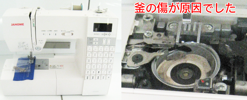 釜の傷が原因なので、部分的分解、研磨、調整でスムーズに縫えるように修理させていただきました。