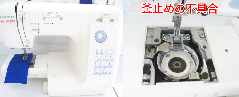 釜止めの不具合が原因なので、部分的分解・調整でスムーズに縫えるように修理させていただきました。