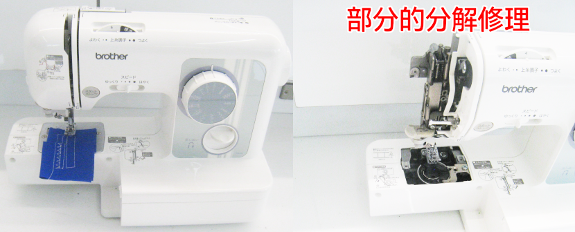 針棒固定ねじが緩んでいたことが原因なので、部分的分解・調整でスムーズに縫えるように修理させていただきました。