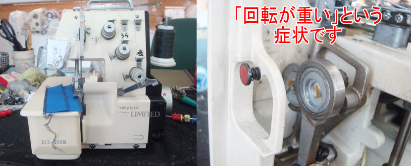 ミシンの宅配修理で集荷させていただいたお客様の3本糸ロックミシンで「回転が重い」という症状です。