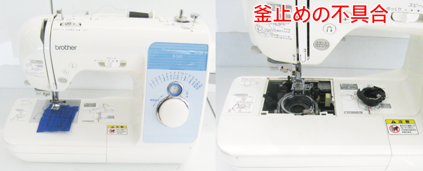 釜止めの不具合が原因なので、部分的分解・調整でスムーズに縫えるように修理させていただきました。