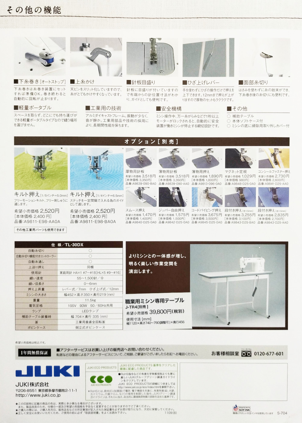 | 種類 | 職業用ミシン | メーカー | JUKI |