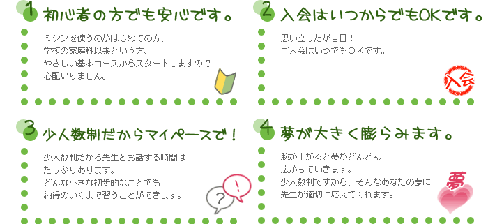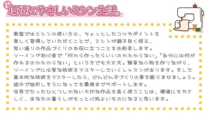 - お申し込み方法・・・(株)ミシン生活にご来店またはお電話でお申し込みください。