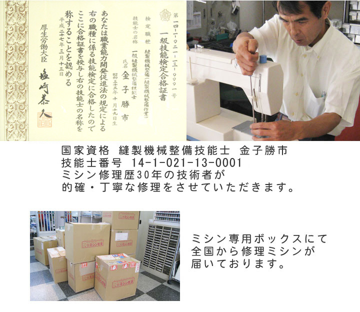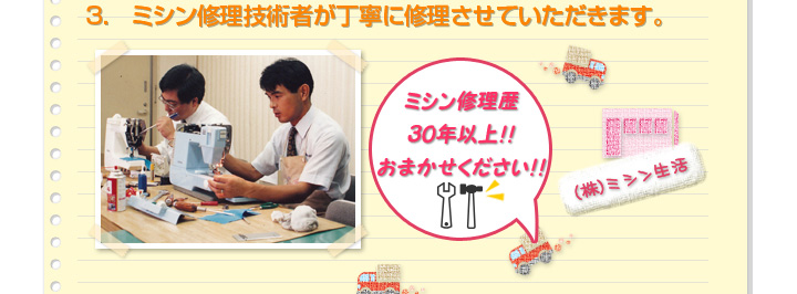 - 家庭用ミシン・職業用ミシン・ロックミシンなどミシン修理30年のスタッフが丁寧に修理させていただきます。