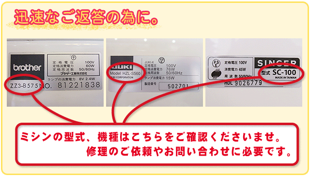 弊社では下取り・回収ミシンの程度のよいものを多数ストックしてあり、古いミシンでもできる限り対応させていただいております。 - 説明書を紛失されたお客様には古いミシンでも、有料にはなりますができる限り類似のタイプをコピーさせていただきます。