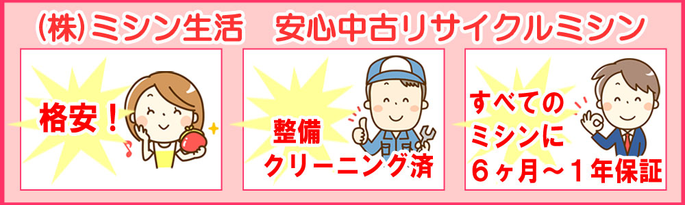 すべてのミシンに整備・クリーニング・点検を行い、機能に不備のあるミシンは販売いたしません。