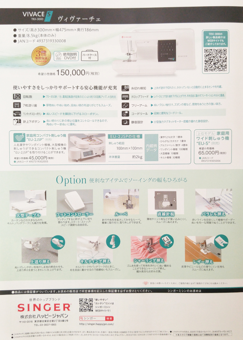 | 種類 | コンピュータミシン | メーカー | シンガー |