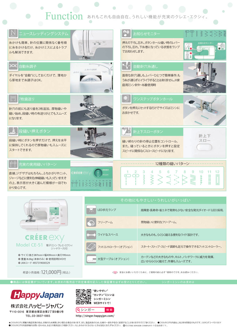 | カタログ | ○ | 特徴 | 現在販売中の人気ミシン。 |