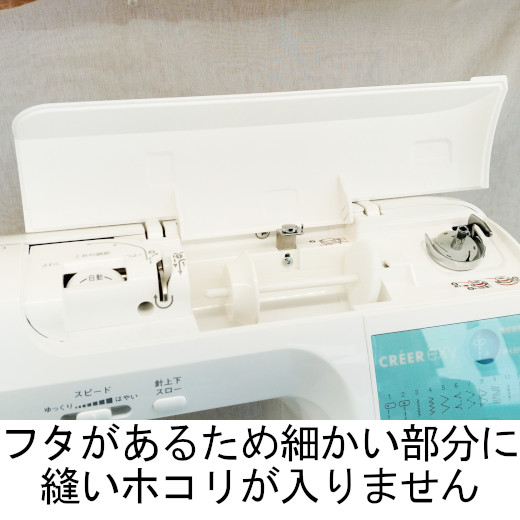 意外とたまりやすい縫いホコリをカバーで防ぎます。