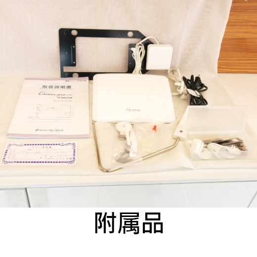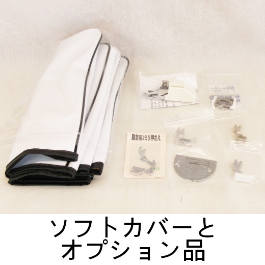 オプション(直線押え2㎜、レザー押え、コンシールファスナー押え、薄物専用針板&押え、上送り装置)付き。  |