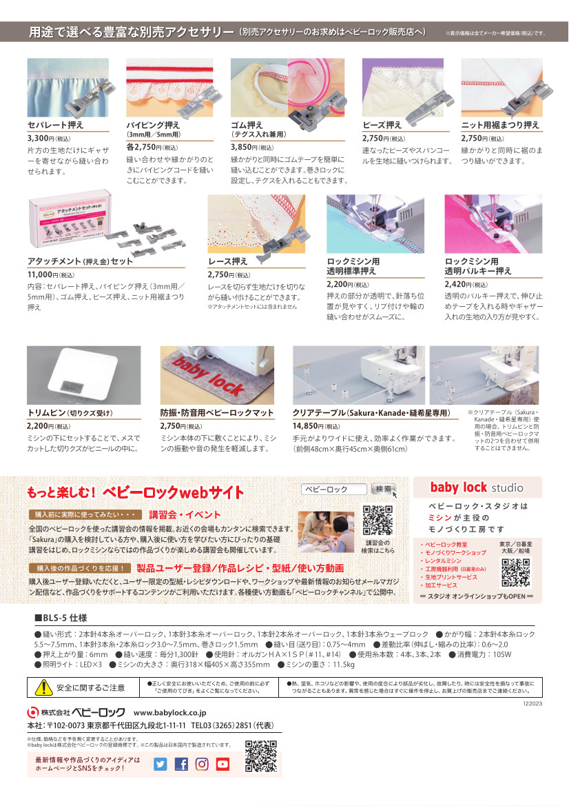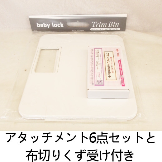 アタッチメント6点セット(まつり押え・ゴム押え・ビーズ押え・セパレート押え・パイピング押え・レース押え 計8800円)+布切りくず受け付き。  |