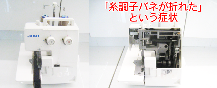 埼玉県さいたま市見沼区からご来店されたお客様の2本糸ロックミシンで「糸調子バネが折れた」という症状です。