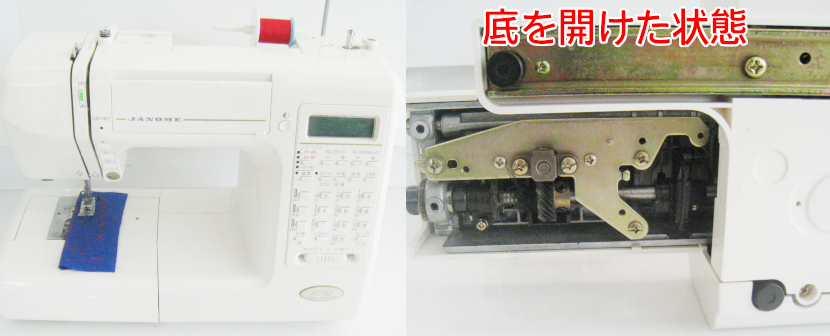 オイル・メンテナンス不足および下軸の糸がらみが原因なので、オーバーホール・内外部クリーンアップでスムーズに縫えるように修理させていただきました。