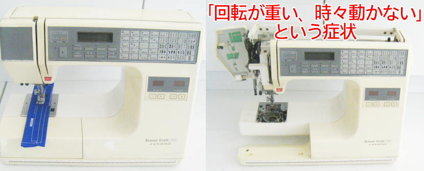埼玉県さいたま市南区からご来店されたお客様のコンピュータミシンで「回転が重い、時々動かない」という症状です。