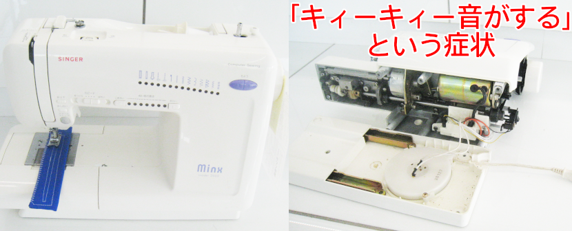 埼玉県桶川市からご来店されたお客様のコンピュータミシンで「キィーキィー音がする」という症状です。