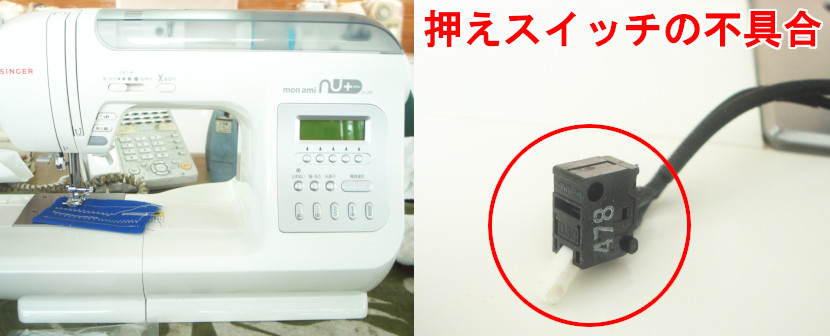 押えスイッチの不具合が原因なので、部分的分解・部品交換で修理させていただきました。