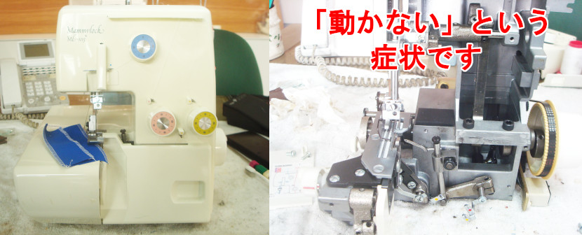 ミシンの宅配修理で集荷させていただいたお客様の3本糸ロックミシンで「動かない」という症状です。