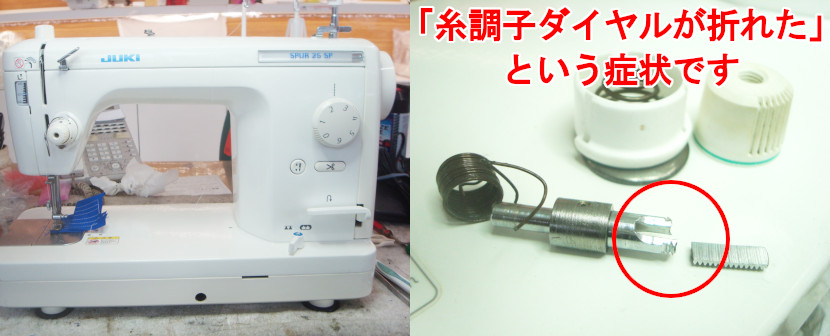 ミシンの宅配修理で集荷させていただいたお客様の職業用ミシンで「糸調子ダイヤルが折れた」という症状です。
