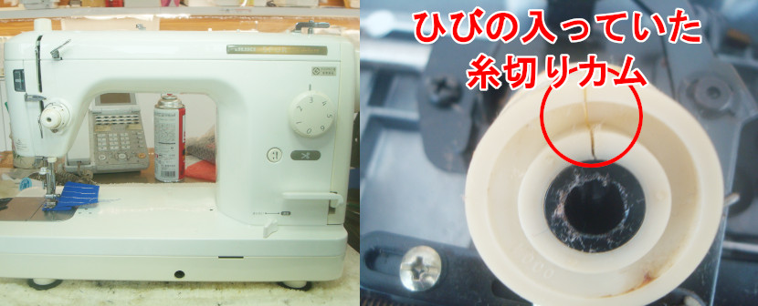 各部点検の上、ひびの入っていた糸切りカムを交換修理させていただきました。