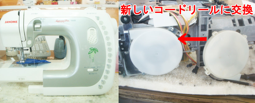 コードリールの不具合が原因なので、部分的分解・部品交換で修理させていただきました。