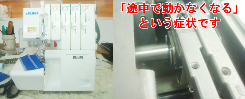 ミシンの宅配修理で集荷させていただいたお客様の4本糸ロックミシンで「途中で動かなくなる」という症状です。