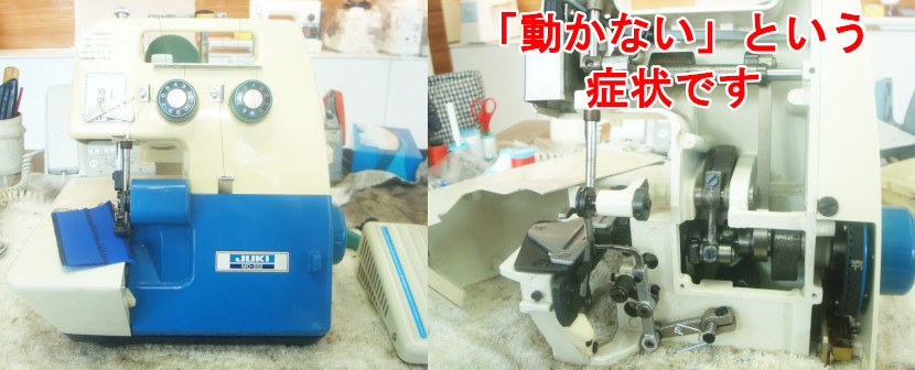 ミシンの宅配修理で集荷させていただいたお客様の2本糸ロックミシンで「動かない」という症状です。