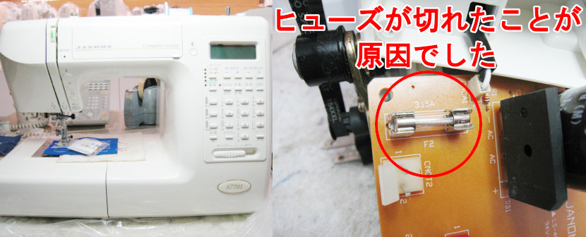 ミシンの宅配修理で集荷させていただいたお客様のコンピュータミシンで「電源が入らない」という症状です。