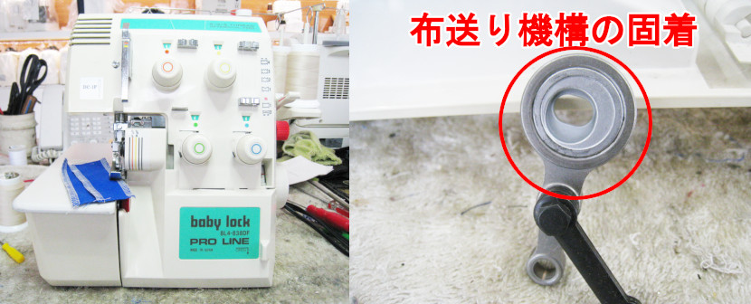 布送り機構の固着が原因なので、オーバーホール・部品交換で修理させていただきました。