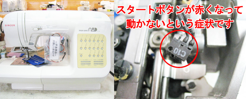 埼玉県さいたま市浦和区からご来店されたお客様のコンピュータミシンで「スタートボタンが赤くなって動かない」という症状です。