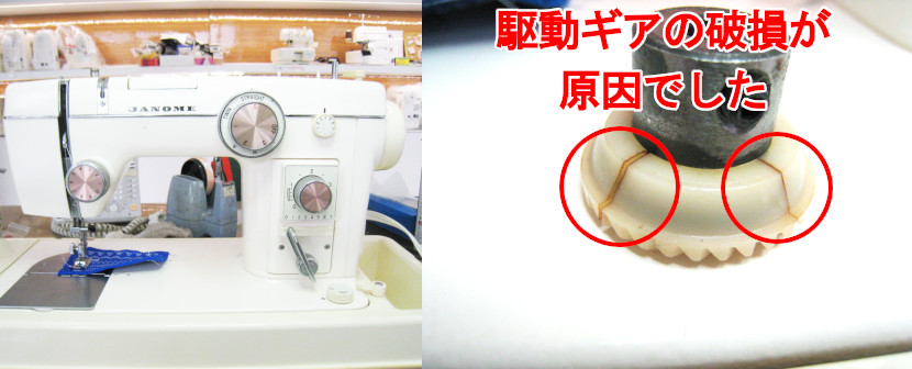 埼玉県朝霞市からご来店されたお客様の電動ミシンで「音が高い」という症状です。
