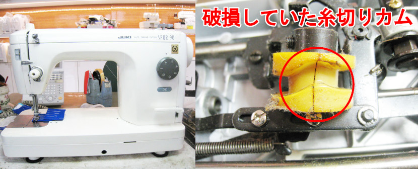 各部点検の上、破損していた糸切りカムを交換修理させていただきました。