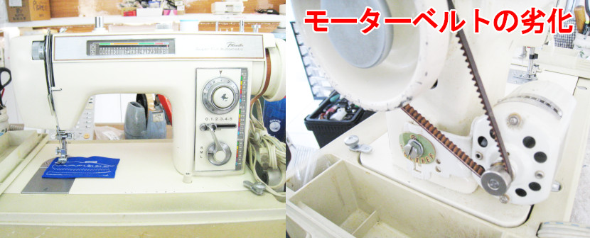 モーターベルトの劣化及びメンテナンス・オイル不足が原因なので、オーバーホール・ベルト交換で修理させていただきました。